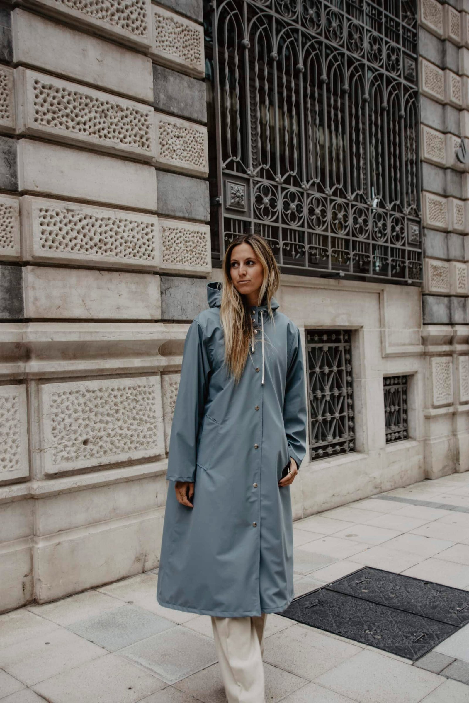 Pesquero, un impermeable de corte evasé y carácter atemporal, confeccionado artesanalmente en Cantabria. Su tejido impermeable de alta calidad, con certificado Oeko-Tex®, garantiza protección y comodidad, mientras que el diseño aporta ligereza, fluidez y libertad de movimiento. Una prenda que combina técnica y estilo en una pieza premium imprescindible para cualquier ocasión.